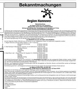 Bekanntmachung Region Hannover vom 01.09.2011