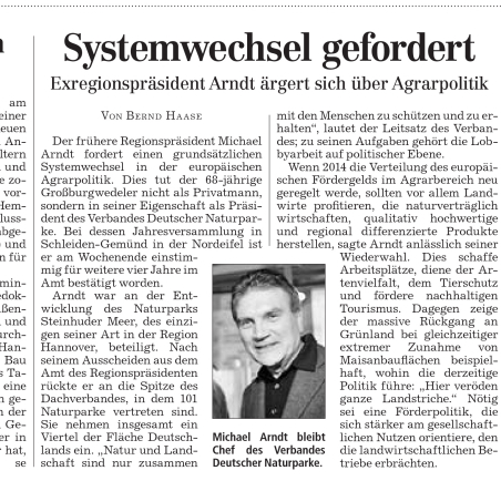 HAZ HANNOVERSEITE 11.10.2010 SYSTEMWECHSEL GEFORDERT