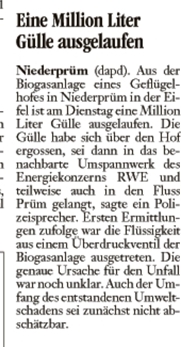 DLZ 13.10.2010 EINE MILLION LITER GÜLLE AUSGELAUFEN