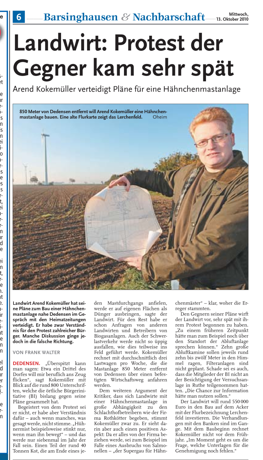 HAZ CZ 13.10.2010 LANDWIRT PROTEST DER GEGNER KAM SEHR SPÄT