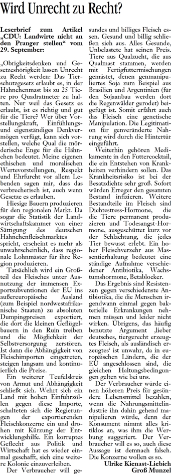 • DLZ 05.10.2010 LESERBRIEF ULRIKE KIENAST-LIEBICH