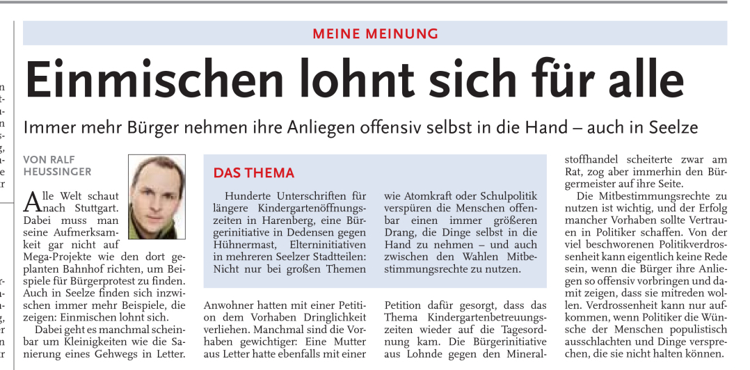 HAZ LZS 16.10.2010 EINMISCHEN LOHNT SICH FÜR ALLE