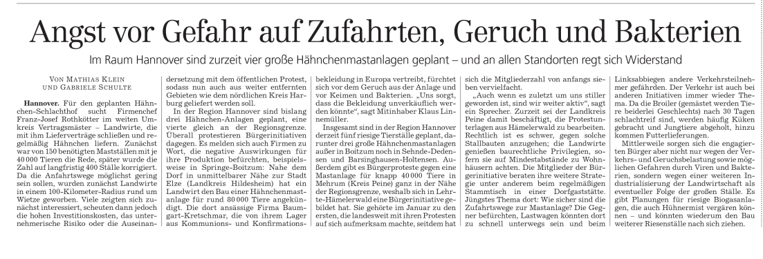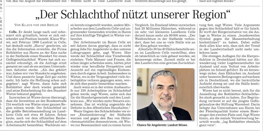 HAZ NIEDERSACHSEN REPORT 16.10.2010 DER SCHLACHTHOF NÜTZT UNSERER REGION