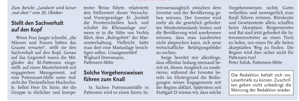 HAZ LZ LESERBRIEF WIGHARD DREESMANN -PATTENSEN UND PETER SOLUK - PATTENSEN