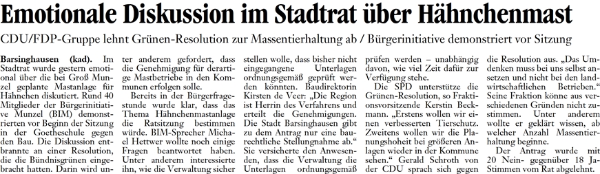 DLZ 28.10.2010 EMTIONELLE DISKUSSION IM STADTRAT ÜBER HÄHNCHENMAST
