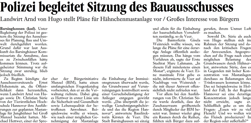 HAZ CZ 20.10.2010 POLIZEI ERSCHEINT IM BAUAUSSCHUSS