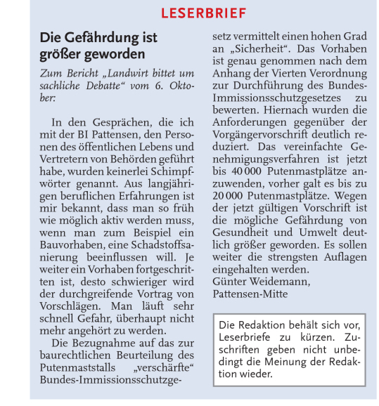 HAZ LZ 20.10.2010 LESERBRIEF GÜNTER WEIDEMANN