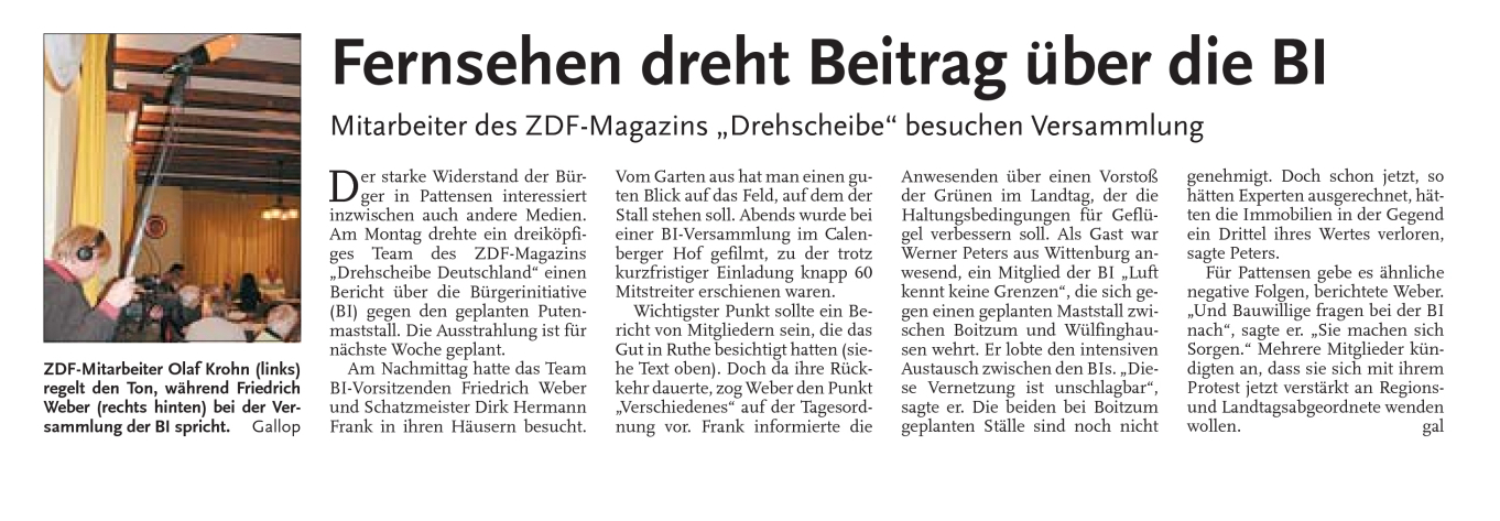 HAZ LZ 20.10.2010 FERNSEHEN DREHT BEITRAG ÜBER DIE BI