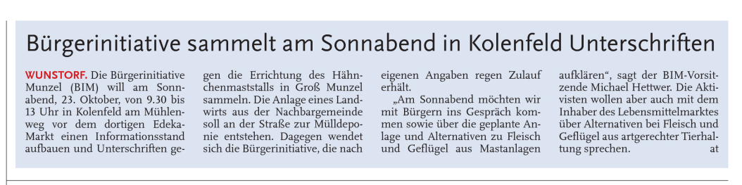 HAZ LZW 20.10.2010 BI SAMMELT AM SONNABEND IN KOLENFELD UNTERSCHRIFTEN