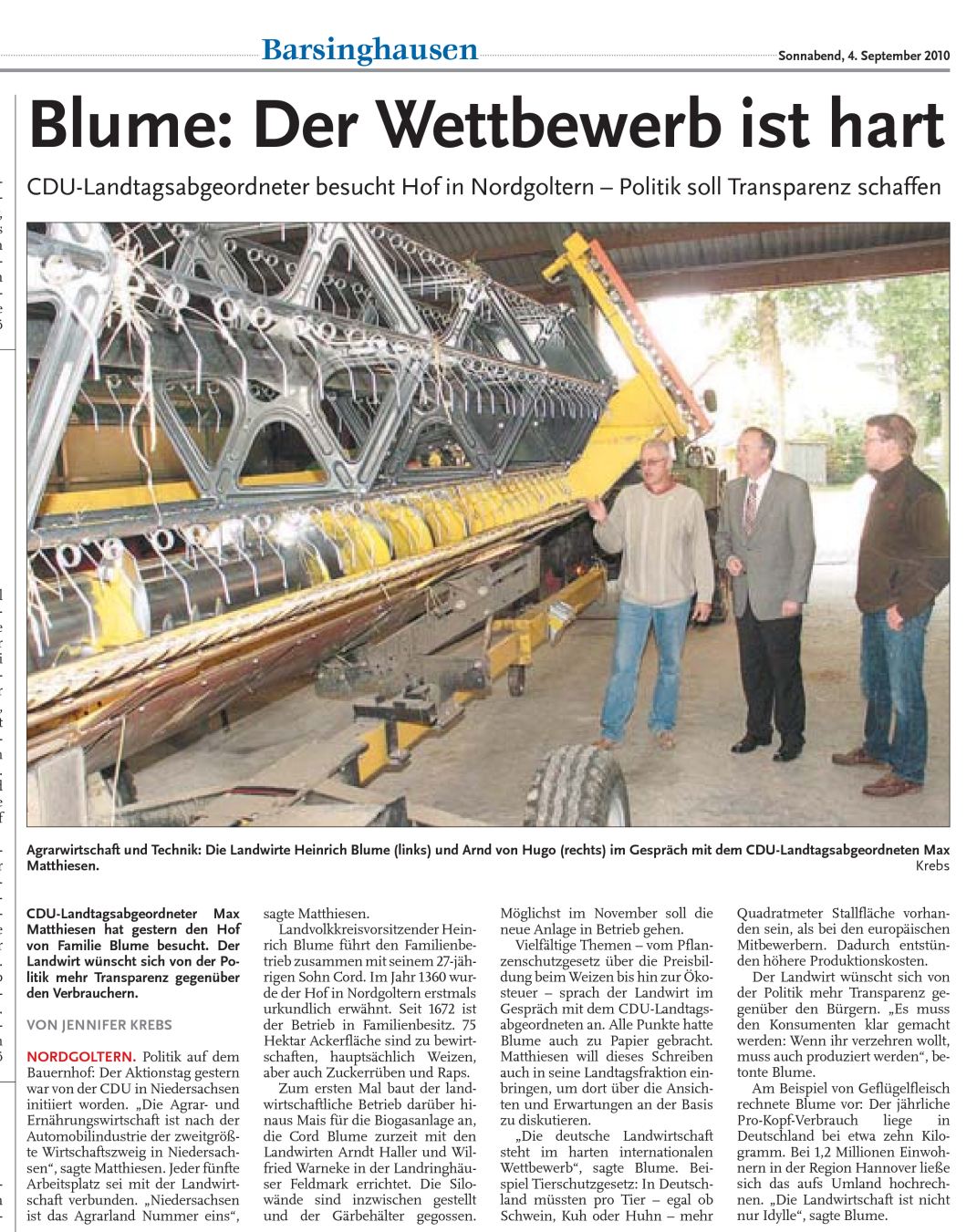 CZ 04.09.2010: BLUME: DER WETTBEWERB IST HART