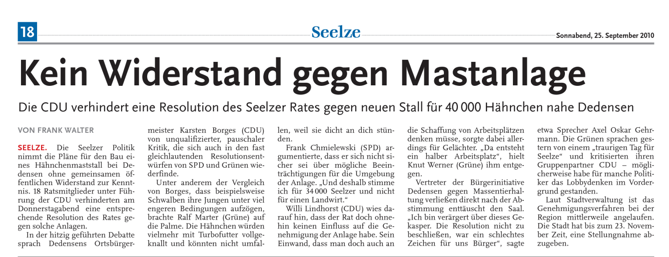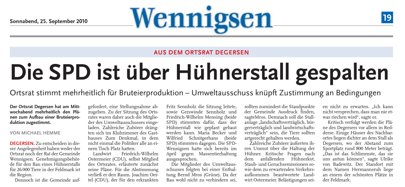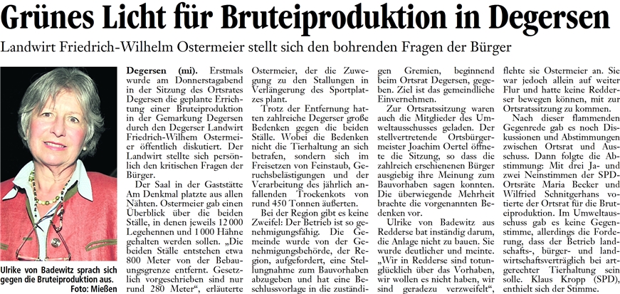 DLZ 25.09.2010: GRÜNES LICHT FÜR BRUTEIPRODUKTION IN DEGERSEN