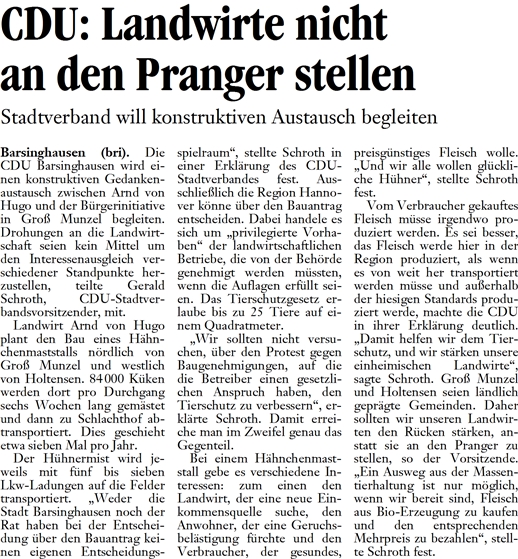 DLZ 29.09.2010: CDU: LANDWIRTE NICHT AN DEN PRANGER STELLEN