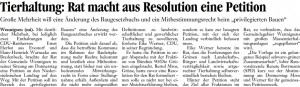 Eine entsprechende Unterstellung in der HAZ habe ihn „persönlich sehr betroffen gemacht“, vertraute er der jüngsten Ausgabe des Fachblatts Land und Forst an, und erteilte „Spekulationen“ um eine „Kehrtwende beim Tierschutz“ eine deutliche Absage. „Einen Frontalangriff gegen die Tierhaltung“, so Ripke könne es in seiner Amtszeit „aus Niedersachsen nicht geben“.