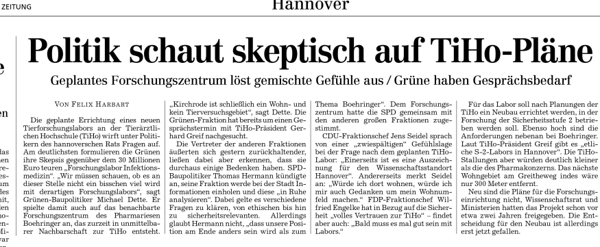 HAZ HANNOVER 14.12.2010 POLITIK SCHAUT SKEPTISCH AUF TIHO-PLÄNE