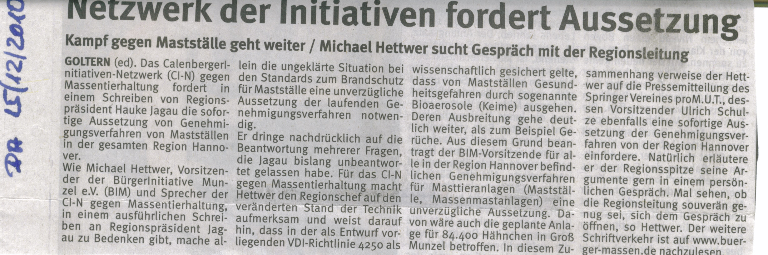 DA 15.12.2010 NETZWERK DER INITIATIVEN FORDERT AUSSETZUNG