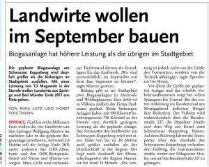 HAZ DA 15.12.2010 LANDWIRTE WOLLEN IM SEPTEMBER BAUEN