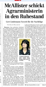 HAZ TITELSEITE 17.12.2010 MCALLISTER SCHICKT AGRAMINISTERIN IN DEN RUHESTAND