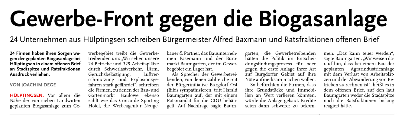 HAZ ANZEIGER BURGDORF 21.12.2010 GEWERBE-FRONT GEGEN DIE BIOGASANLAGE