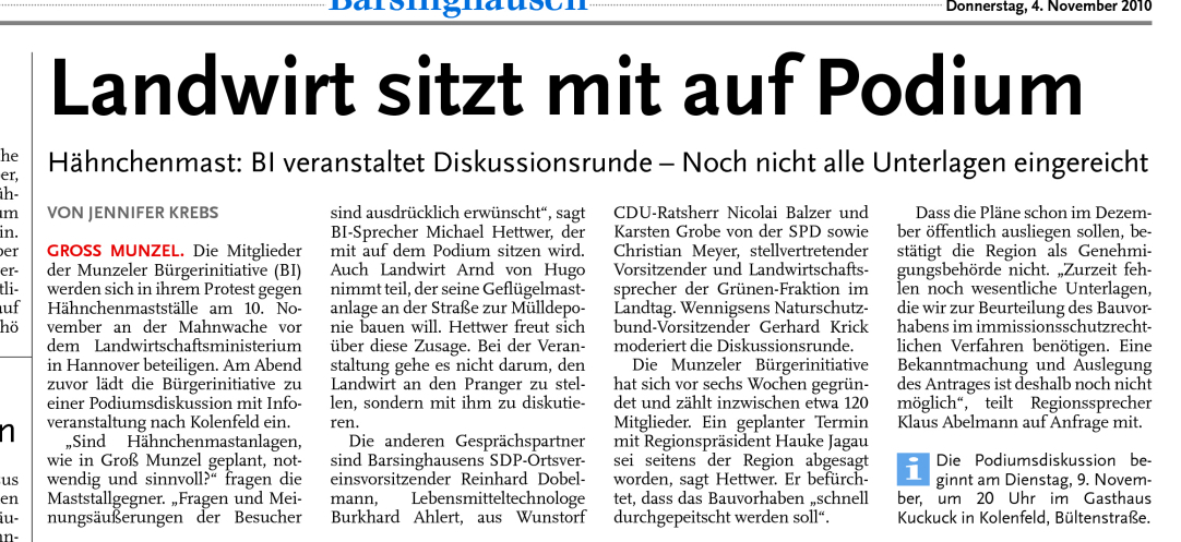 DA 04.11.2010 DIE GEPLANTE MASSENTIERHALTUNG IN DER GEMEINDE BEWEGT DIE GEMÜTER