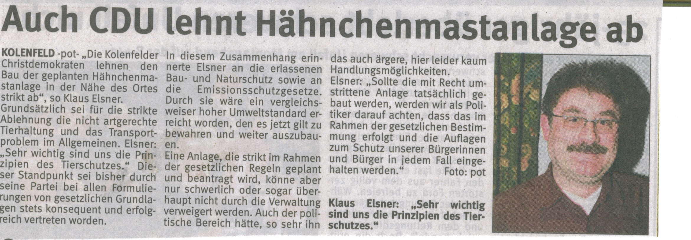 WSA 04.11.2010 AUCH CDU LEHNT HÄHNCHENMASTANLAGE AB