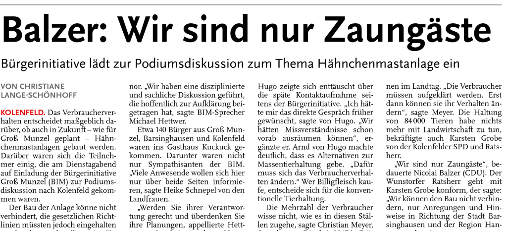 Ein Landwirt aus dem Landkreis Celle hat von einer Beratungsfirma aus Meppen Besuch bekommen. Ihr Anliegen: Er sollte Land und seinen Namen für fünf Mastställe mit je 80000 Tieren – macht als 400000 Tiere – und einer Biogasanlage mit rund 500 Kilowatt geben. „Für das Projekte hätte sie ungefähr fünf Hektar benötigt“, berichtet der Landwirt, der seinen Namen nicht in der Zeitung lesen möchte.
