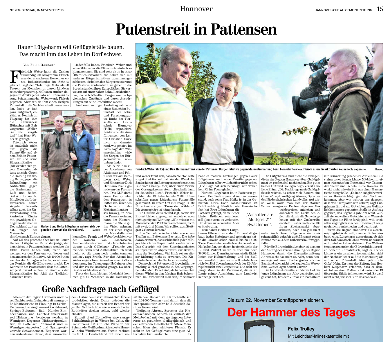 HAZ HANNOVERSEITE 16.11.2010 PUTENSTREIT IN PATTENSEN