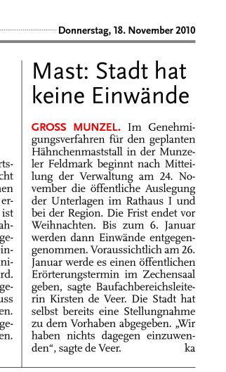 HAZ CZ 18.11.2010 MAST: STADT HAT KEINE EINWÄNDE