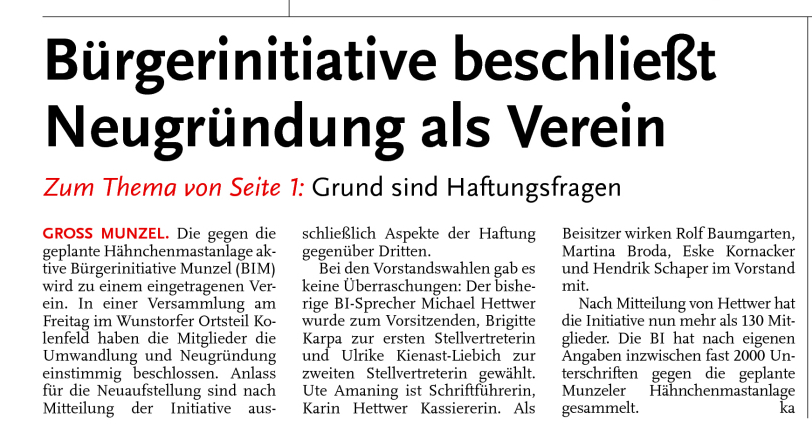 HAZ CZ 22.11.2010 UNTERSTÜTZUNG FÜR BI MUNZEL
