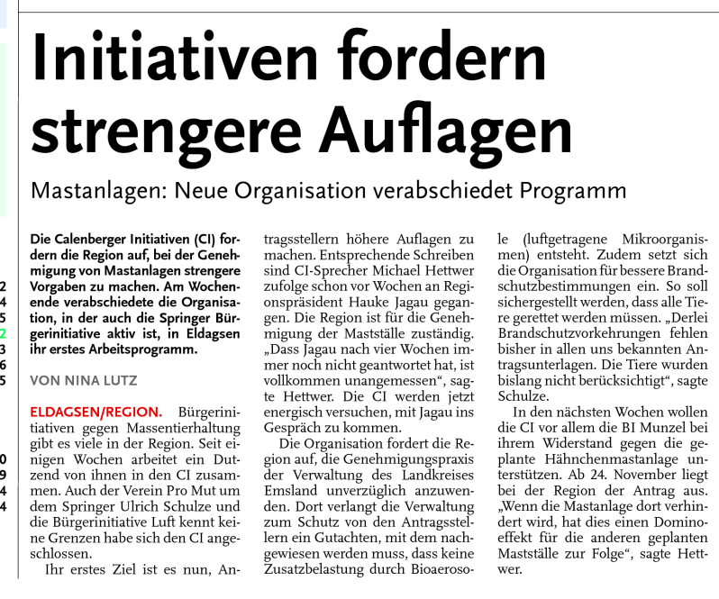 HAZ DA 22.11.2010 INITIATIVEN FORDERN STRENGERE AUFLAGEN