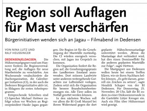 HAZ LZS 22.11.2010REGION SOLL AUFLAGEN FÜR MAST VERSCHÄRFEN