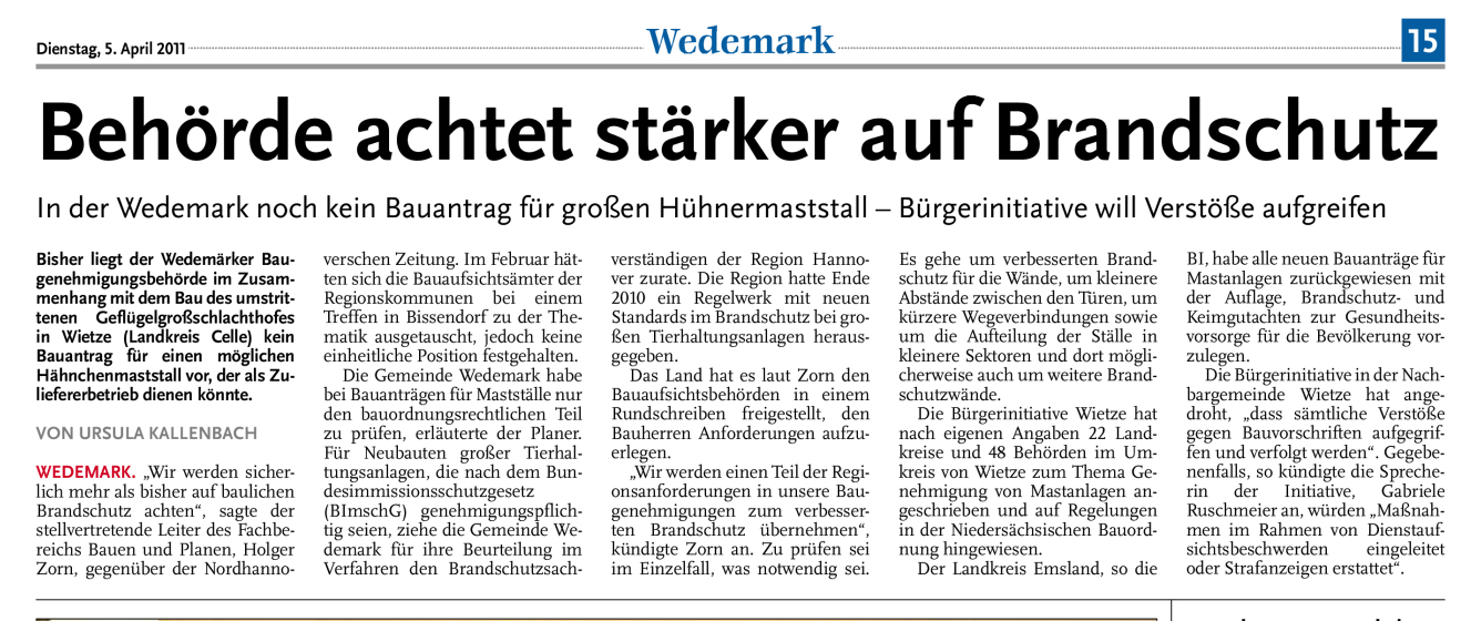 HAZ NHZ 05.04.2011 BEHÖRDE ACHTET STÄRKER AUF BRANDSCHUTZ