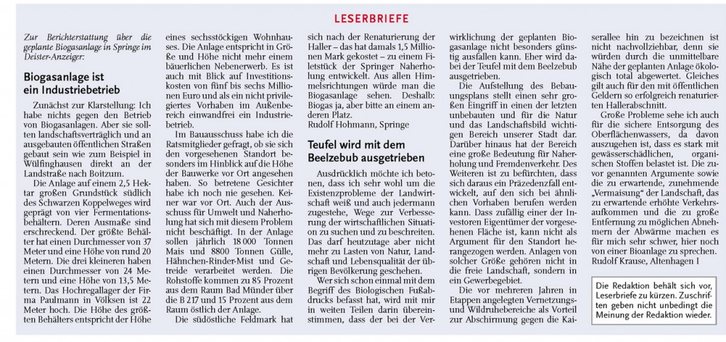 AZ DA 26.04.2011 LESERBRIEFE RUDOLF HOMANN SPRINGE UND RUDOLF KRAUSE ALTENHAGNE I