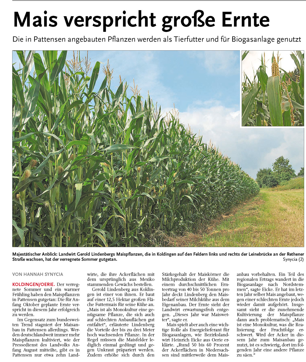 HAZ LN 11.08.2011 MAIS VERSPRICHT GROSSE ERNTE