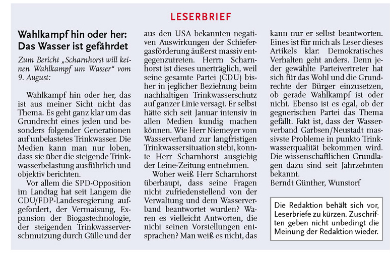 HAZ LZW 11.08.2011 LESERBRIEF BERNDT GÜNTHER WUNSTORF