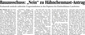 DLZ 20.08.2011 BAUAUSSCHUSS NEIN ZU HÄHNCHENMAST-ANTRAG