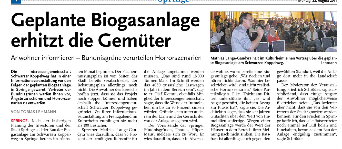 HAZ DA 22.08.2011GEPLANTE BIOGASANLAGE ERHITZT DIE GEMÜTER