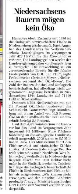 HAZ 23.08.2011 NIEDERSACHSENS BAUERN MÖGEN KEIN ÖKO