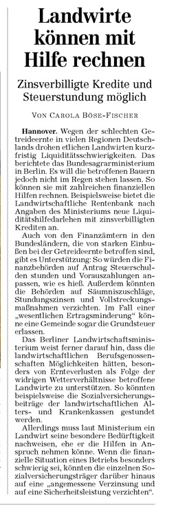 HAZ 25.08.2011 LANDWIRTE KÖNNEN MIT HILFE RECHNEN