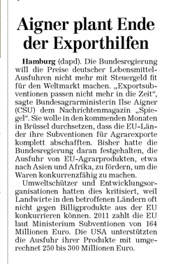 HAZ 05.12.2011 AIGNER PLANT ENDE DER EXPORTHILFEN