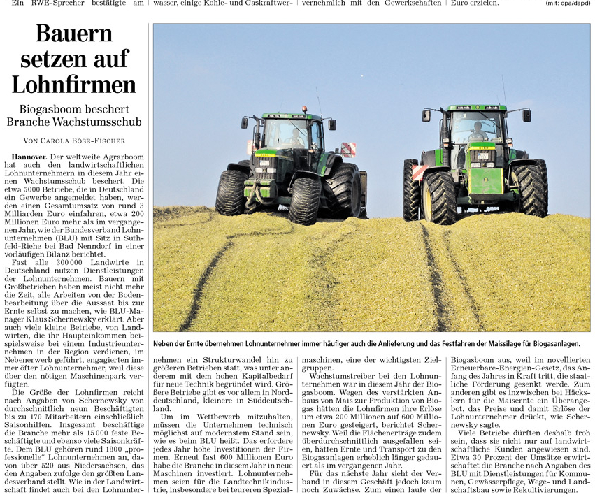 HAZ 05.12.2011 BAUERN SETZEN AUF LOHNFIRMEN