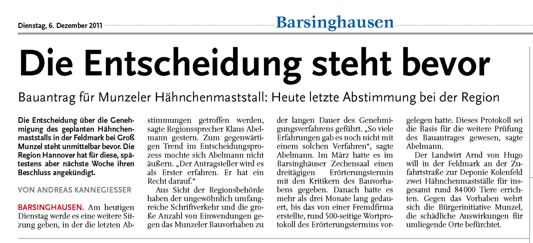 HAZ CZ 06.12.2011 DIE ENTSCHEIDUNG STEHT BEVOR