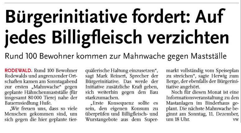 HAZ LZW 06.12.2011 BÜRGERINITIATIVE FORDERT: AUF JEDES BILLIGFLEISCH VERZICHTEN.JPEG