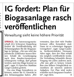IG FORDERT: PLAN FÜR BIOGASANLAGE RASCH VERÖFFENTLICHEN