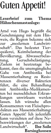 „Wir haben die Entscheidung nach Recht und Gesetz getroffen und denken, dass es die richtige Entscheidung ist“, sagte Priebs. Für den Bau der Anlage legte die Region strenge Auflagen hinsichtlich des Brandschutzes fest: Unter anderem sind eine Brandmeldeanlage sowie ein Rauchabzug vorgeschreiben. Daneben soll die Stahlkonstruktion aus brandfesterem Material als üblich bestehen. „Viele der Auflagen sind ein absolutes Novum in diesem Bereich“, erklärte Peter Hansen von der Bauaufsicht der Region. Gegen das Vorhaben vor Ort gab es über 460 Einwendungen von Bürgern aus der Region und auch darüber hinaus. Sie befürchten unter anderem Lärmbelästigungen und Luftverschmutzungen, und daraus resultierend auch Gesundheitsgefährdungen durch Keime in der Abluft aus dem Mastbetrieb.