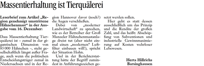 DLZ 21.12.2011 LESERBRIEF HERTA HILLRICHS BARSINGHAUSEN