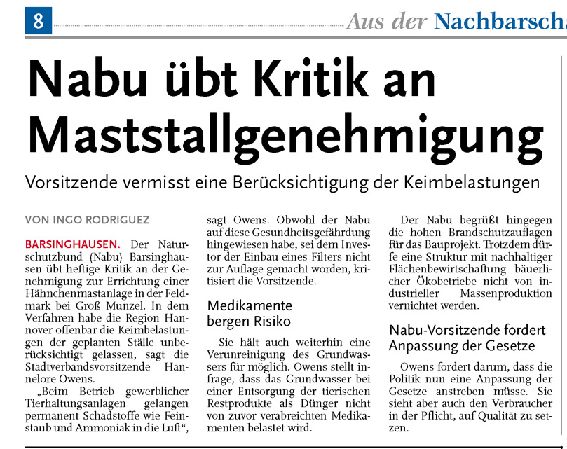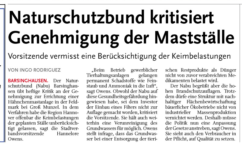 HAZ CZ 21.12.2011 NATURSCHUTZBUND KRITISIERT GENEHMIGUNG DER MASTSTÄLLE