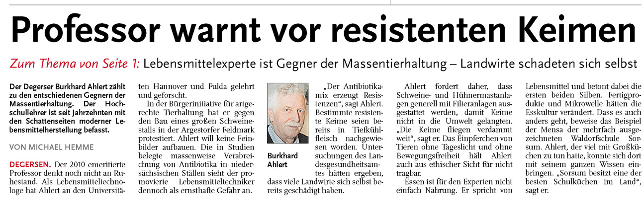 HAZ CZ 28.12.2011 PROFESSOR WARNT VOR RESISTENTEN KEIMEN