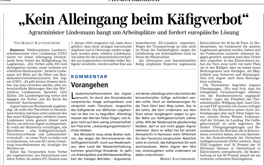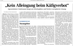 HAZ 08.02.2011 "KEIN ALLEINGANG BEIM KÄFIGVERBOT"