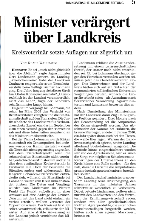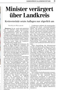 HAZ TITELSEITE 18.02.2011 AGRARMINISTER RÜGT VETERINÄRE