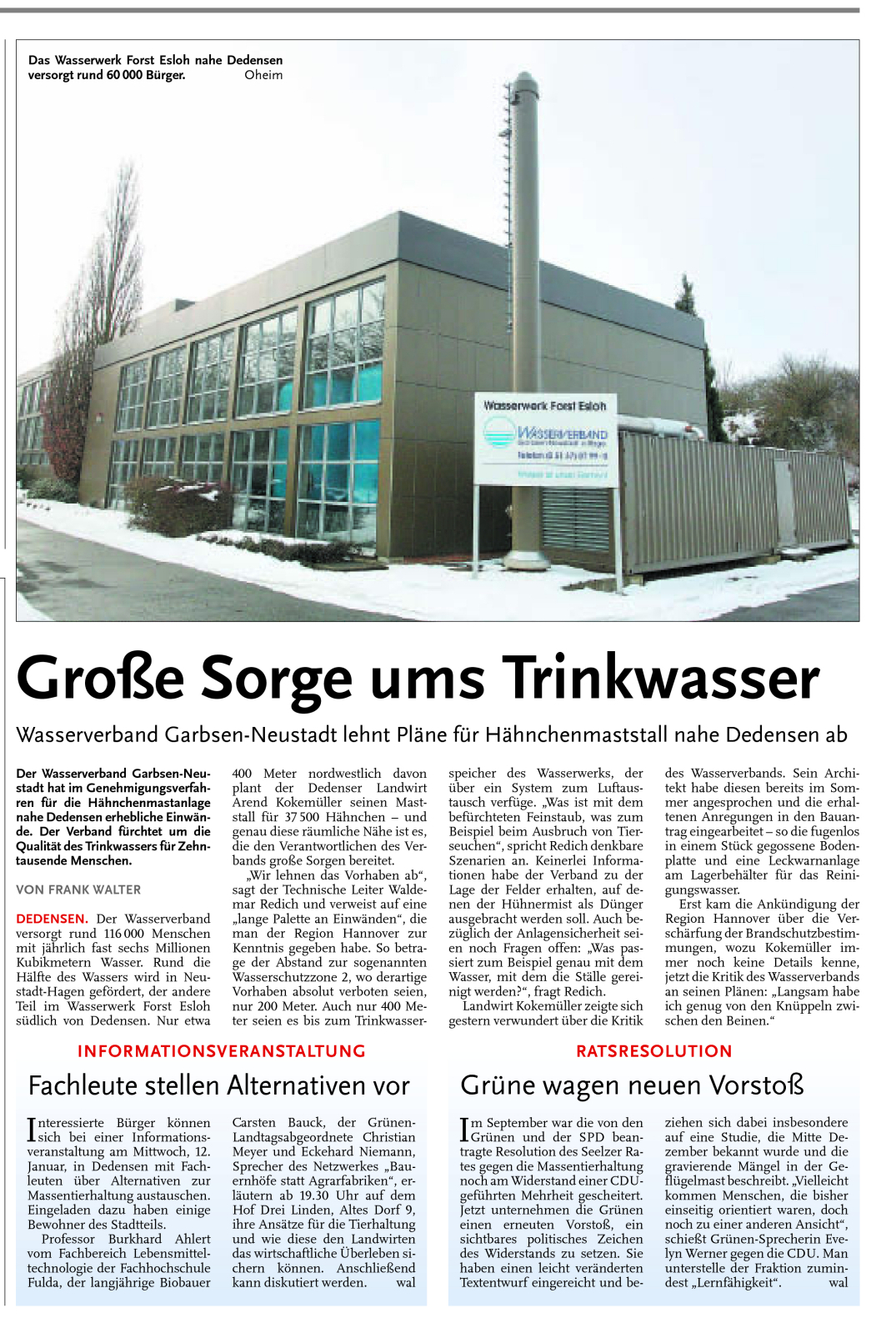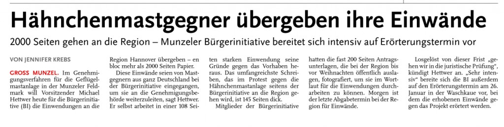 HAZ CZ 05.01.2011 HÄHNCHWNMASTGEGNER ÜBERGEBEN IHRE EINWÄNDE